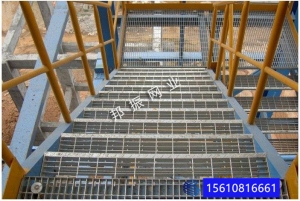 1、踏步板簡介:踏步板是用鋼格板外加防滑條和側板組合而成的深加工產品。主要用于鋼梯上作踏步用,所以通常稱其為樓梯踏步板。